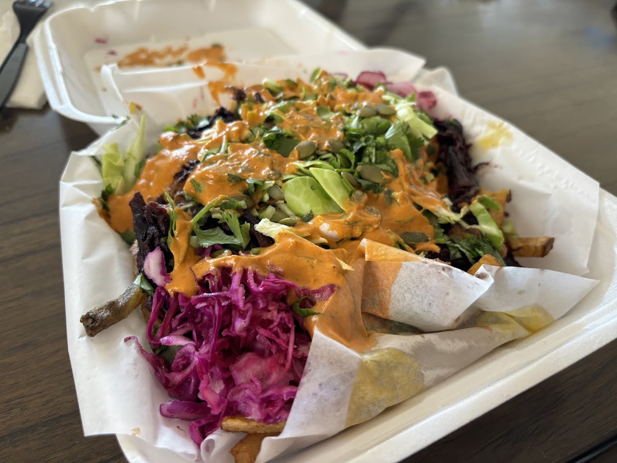 What makes this place stand out is how approachable everything feels. You don’t need to be vegan to enjoy it. On my last visit I ordered the loaded nachos made with house cashew queso and smoky jackfruit carnitas. The texture was shockingly close to slow-cooked pork, which lines up with food science research from the University of California showing how jackfruit fibers absorb marinades in a similar way to shredded meat. The owner actually explained their process to me once: they braise the fruit in a mix of cumin, smoked paprika, and citrus for about 45 minutes before finishing it on a flat-top. That method is why the flavor sinks so deep instead of sitting on the surface.